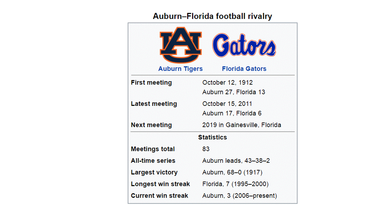 I would probably never refer to myself as a sports fan. I do not watch or follow a lot of sports. But I do like football, and I LOVE college football. And more especially I like following the SEC (College football’s Southeastern Conference) and other big conferences. Which brings up my personal tale of football rivalry. My Miami-area high school was a football powerhouse. It was such a big deal that we played half of our schedule in the (old) Orange Bowl stadium. After high school I went to Auburn University. College football in the south is wildly popular. On football Saturdays stadiums are often filled with 100,000 or more screaming fans.
